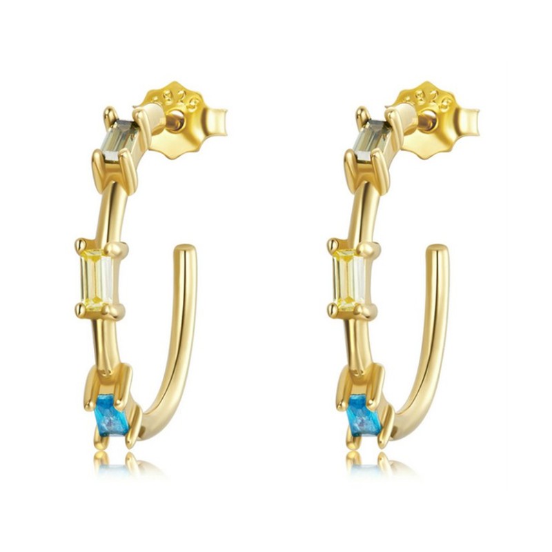 Εντυπωσιακά σκουλαρίκια κρίκοι, επιχρυσωμένα, διακοσμημένα με κυβική ζιρκόνια σε εντυπωσιακά χρώματα που προσφέρει εξαιρετική λάμψη στο κόσμημα.